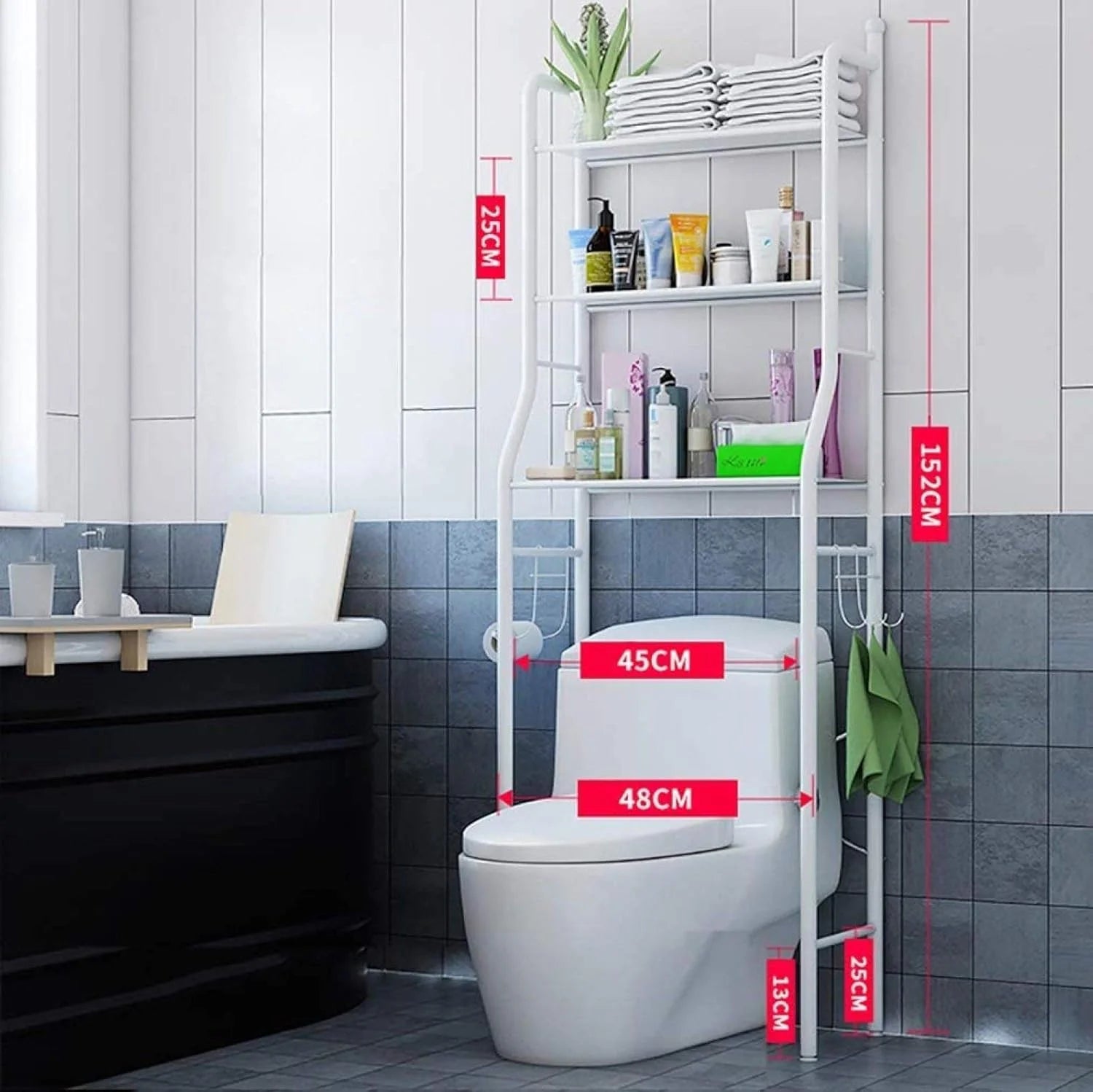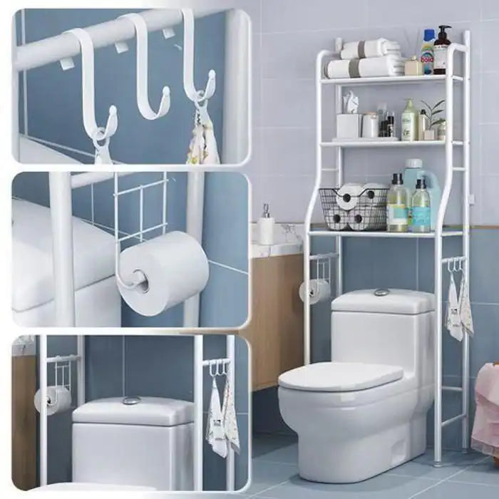 AquaShelf™ - رف التخزين الذكي فوق المرحاض (3 طبقات لتنظيم مثالي)